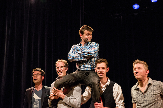 Vijf mannen maken samen een theatervoorstelling over vriendschap.
