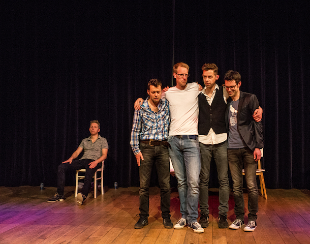 Vijf mannen maken samen een theatervoorstelling over vriendschap.